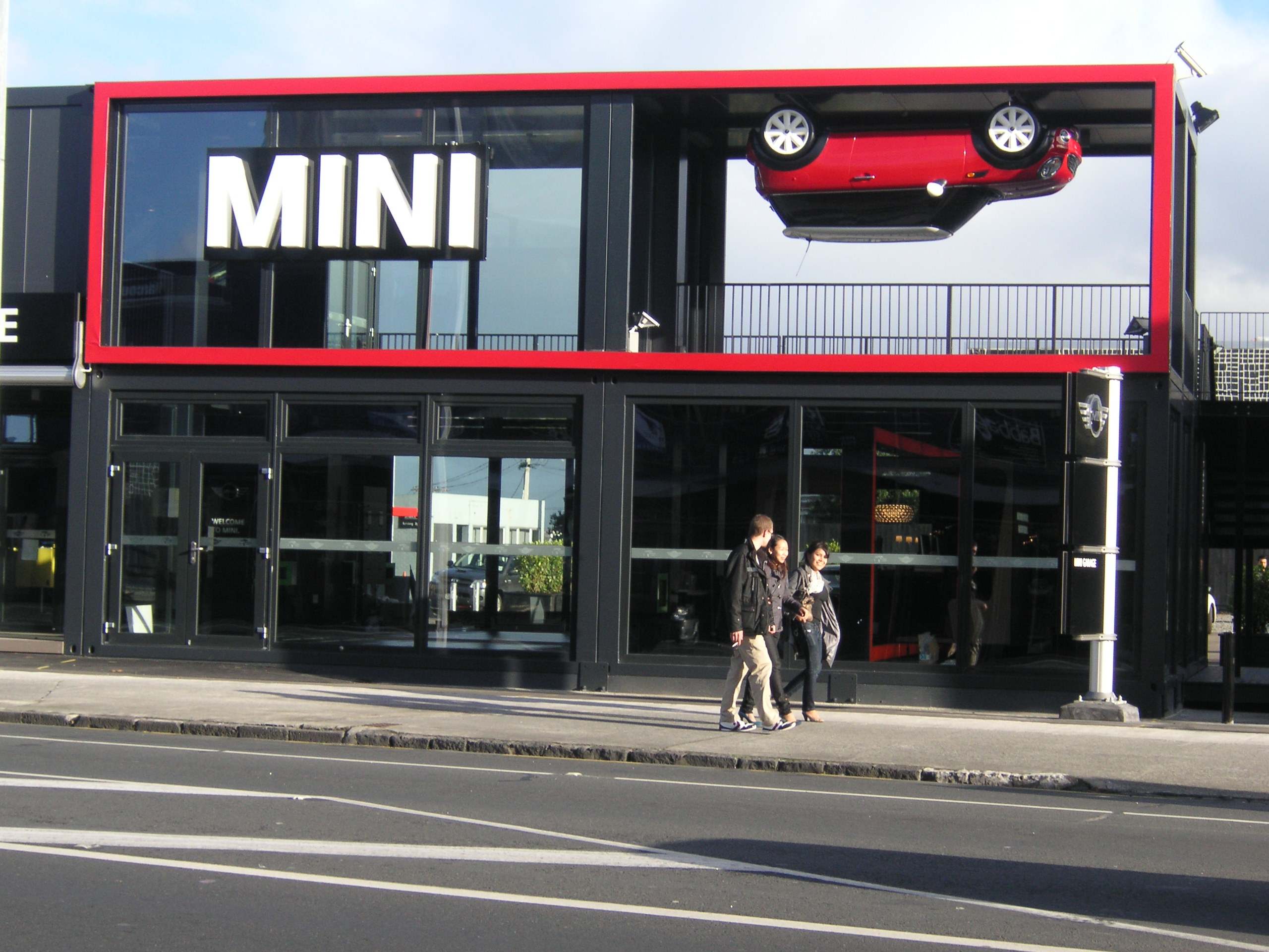 Talk about traffic stopping ideas. We saw this MINI Cooper Pop Up showroom at a busy intersection on trendy Posonby Road in Auckland that featured a MINI in a very gravity defying position. We’re sure someone in the marketing team at MINI must be humming to Lionel Richie’s Dancing on the Ceiling when the idea was conceived.