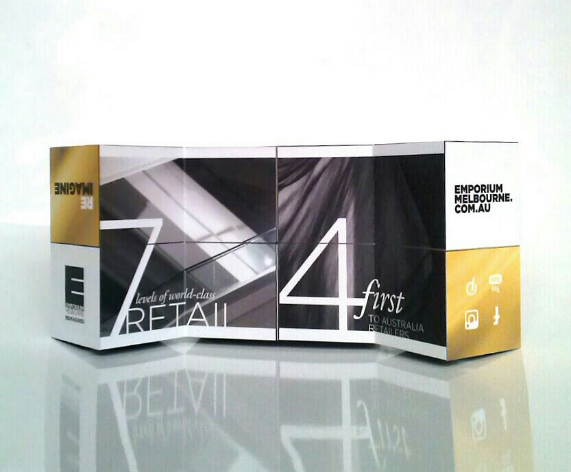 On the opening day of Melbourne’s latest retail shopping sensation Emporium in the CBD, eager shoppers were welcomed with this stylish desk accessory as a keepsake/memento. We are quite partial to using these cube puzzles as a leave behind/promotional merchandise because we’ve done something similar before in a past project. So it’s safe to say we are somewhat qualified to provide some feedback on the marketing effectiveness of the Emporium cube.