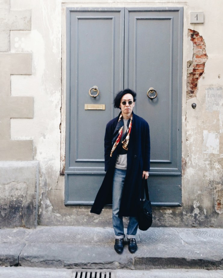 Every time our Creative Director visit Florence Italy, he never misses the opportunity to catch an exhibition at Palazzo Strozzi. It’s always a good pit stop for a city heavy on walking. On his most recent visit, he managed to catch the renaissance art exhibition #500Firenze. And to coincide with his visit, he put together an outfit with a touch of an artist courtesy of the vintage print silk scarf. Here’s how his visit went.